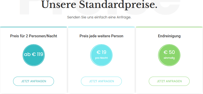 ![]() Bedingungen Mietbedingungen Überweisung vor Anreise keine Kaution Anreisetag: Täglich – früheste Anreisezeit: 16:00 Uhr Abreise: bis spätestens 10:00 Uhr Zahlungsmöglichkeiten