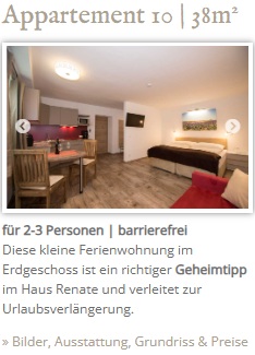 Appartementhaus Renate in Rauris (Salzburger Land) Freuen Sie sich auf Ihren Urlaub im schönen Salzburger Land! ![]() Verbringen Sie einen erholsamen, spannenden, aktiven, erlebnisreichen, eindrucksvollen oder sportlichen Urlaub in unserem neu renovierten Appartementhaus, inmitten des verkehrsberuhigten Ortszentrums von Rauris. Mit insgesamt 11 Ferienwohnungen, von denen 5 barrierefrei eingerichtet sind, bieten wir auch für Senioren und Rollstuhlfahrer die perfekte Urlaubsunterkunft. In unmittelbarer Nähe zu unserem Appartementhaus finden Sie diverse Einkaufsmöglichkeiten, gemütliche Restaurants, Skischulen, Infobüros und vieles mehr. Im Sommer ist es der ideale Ausgangspunkt für Wanderungen im Nationalpark Hohe Tauern und im Winter bringt Sie der Skibus direkt zu den Talstationen der Hochalm- und der Kreuzbodenbahn. Wir freuen uns, Sie in unserem Haus zu begrüßen und Ihnen einen unvergesslichen Urlaub zu bieten! Ihre Familie Ellmauer Nationalpark Sommercard Ihre Eintrittskarte zu den schönsten Attraktionen des Nationalparks! Als Gast unseres Hauses erhalten von 01. Mai bis zum 31. Oktober jeden Jahres die Nationalpark Sommercard für den gesamten Aufenthalt kostenlos. Unsere Appartements Der perfekte Urlaub beginnt mit der Auswahl der passenden Unterkunft. Wir haben mit dem Haus Renate genau den richtigen Ort geschaffen, um Jung und Alt den Stress des Alltags vergessen zu lassen. Genießen Sie in einer unserer 11 – zum Teil neu gebauten bzw. neu renovierten – Wohnungen, alle Annehmlichkeiten unseres Hauses. In den 5 ganz neuen Appartements sorgen nach erlebnisreichen Urlaubstagen die Duschen mit integriertem Infrarotpaneel für Ihr Wohlbefinden und die neuen Boxspringbetten verleiten zum Träumen! Hier steht einem perfekten Urlaub nichts mehr im Wege! ![]() ![]() ![]() ![]() Preise unserer Appartements > Barrierefreier Urlaub in Rauris ![]() Barrierefreiheit wird bei uns ganz groß geschrieben. Seit Dezember 2016 verfügt unser Haus über insgesamt fünf barrierefreie Wohnungen welche mit dem neu gebauten Personenaufzug schnell und unkompliziert zu erreichen sind. » ideal für Rollstuhlfahrer und Senioren – komfortabel für jedermann |