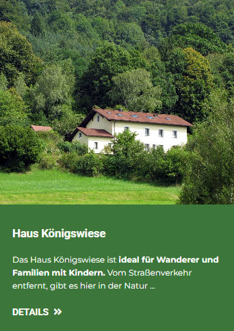 Haus KönigswieseDas Haus Königswiese ist ideal für Wanderer und Familien mit Kindern. Vom Straßenverkehr entfernt, gibt es hier in der Natur viel zu entdecken. Das Haus bietet auf 3 Etagen Platz für bis zu 38 Personen. Zwei Wohnzimmer dienen als Aufenthaltsräume. Als Gast unseres Hauses Königswiese können Sie alle Annehmlichkeiten des Steinschalterhofs mitbenützen. Genießen Sie Ihr ★★★★ Frühstücksbuffet und Essen im Restaurant des Steinschalerhofs. Auch die Nutzung des Freibads, des Kinderspielhauses, des Naturgartens, der 1,5 ha großen Steinschaler Gärten mit zwei Teichen sind inkludiert! Ausstattung