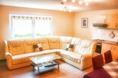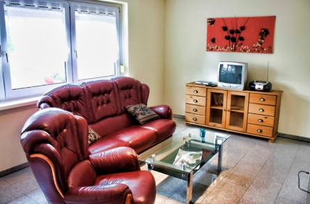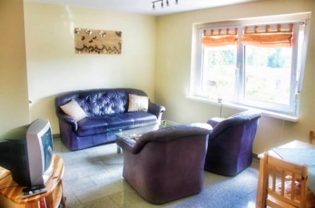 - Das Wohnzimmer ist ausgestattet mit einer Ledercouch, 2 Sessel, SAT-TV, WLAN, CD-Radio.