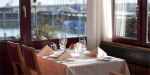 Panorama-Restaurant aus gleitet der Blick direkt zum Hafen, wo auch die