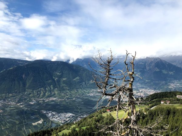 Knottnkino genießen Sie eine grandiose Aussicht auf das Meraner Becken.