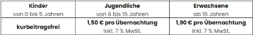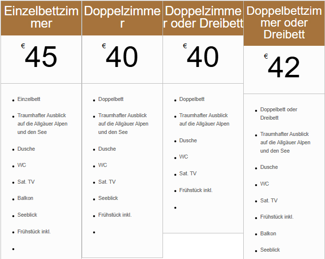 ![]() Preise Die nachfolgenden Preise sind Pro Person/Tag und gelten ab einem Aufenthalt von 4 Tagen