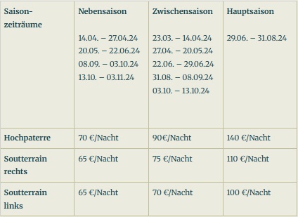 Die Preise sind pro Übernachtung und Wohnung I N K L U S I V E: