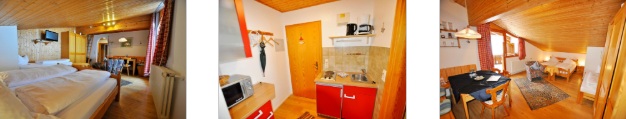 einmal vorhanden Appartment Alpenveilchen ![]() ![]() Appartment Alpenveilchen im Landhaus Wildschütz für 2 – 5 Personen gemütlich eingerichtetes Appartement (34 m²) mit kombiniertem Wohn-Schlafraum (Doppelbett + Einzelbett) und Matratzenlager im Dachgiebel (gerade für Kinder ein Highlight). Kleine Kochgelegenheit (mit Kühlschrank), Essecke, Bad mit Dusche, WC, großem Spiegel und Fön, Sat-TV, Direktwahl-Telefon, Radio, Wandsafe und großem Balkon. Im Preis enthalten: