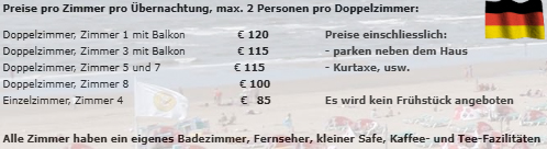 Preise & Konditionen ![]() ![]() __________________ KONTAKT: Pension Banning Loek Banning Brederodestraat 61 NL-2042 BC Zandvoort (Nord-Holland) Niederlande Tel.: +31-(0)23-5719811 ![]() www.pensionbanning.nl |